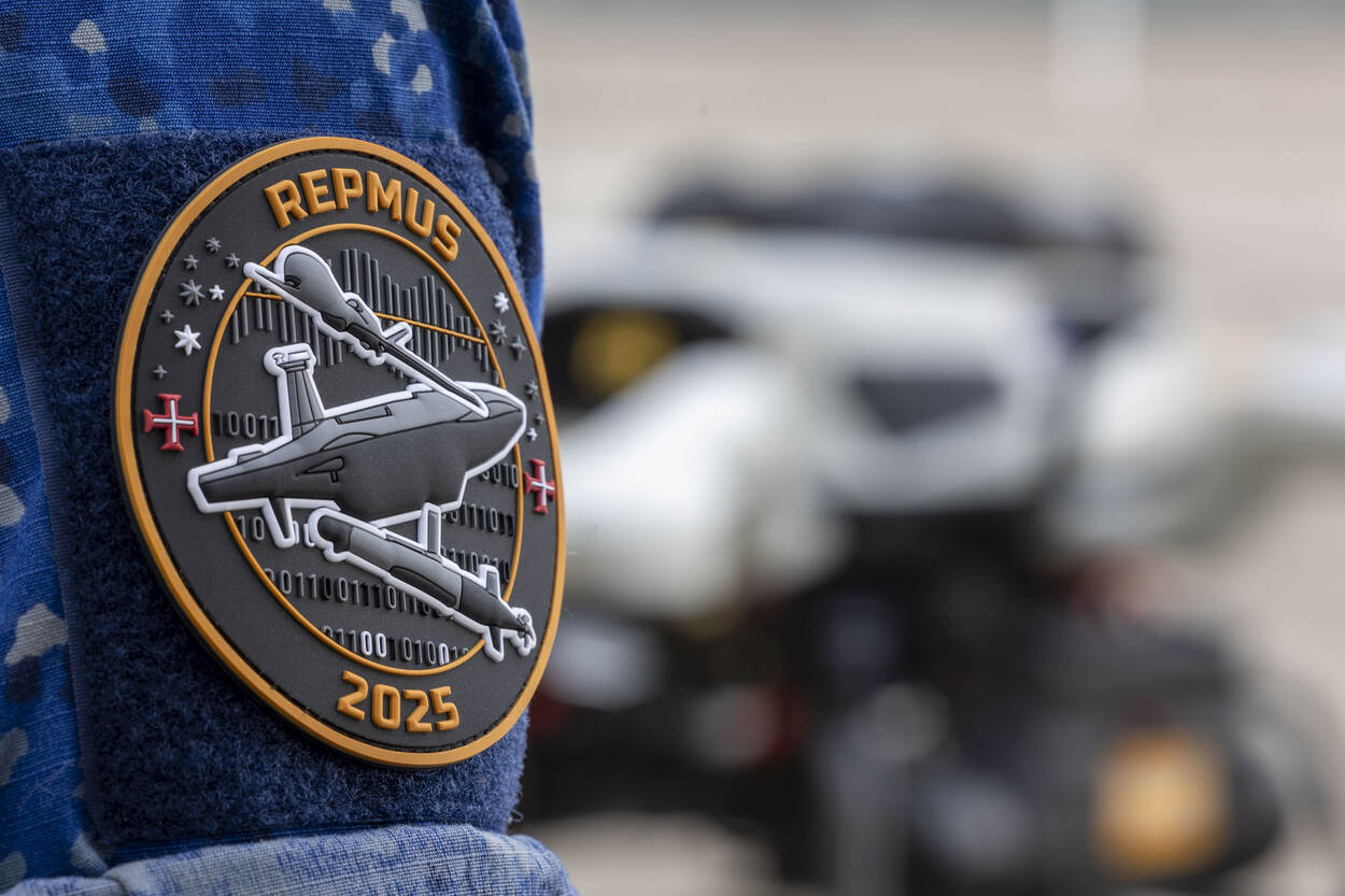 Het mouwembleem van REPMUS 2025 met daarop een drone.
