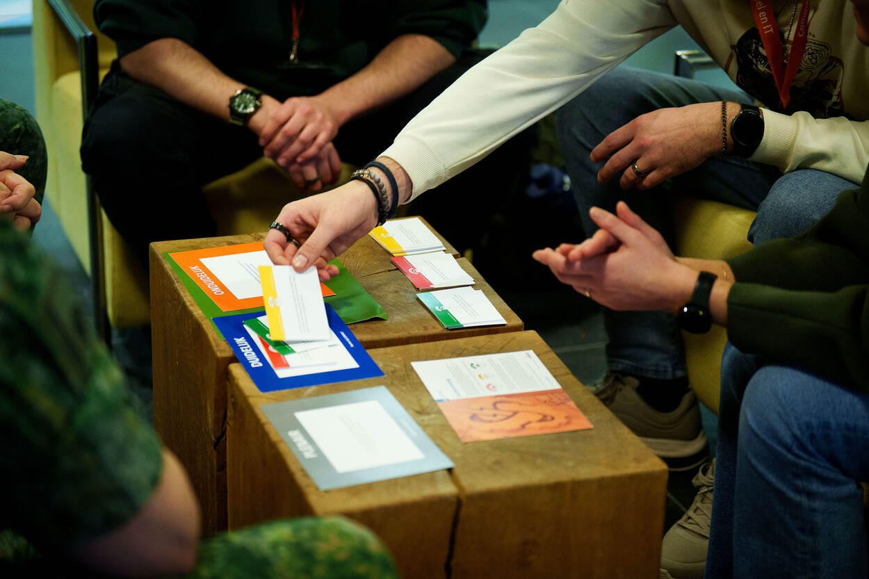 Daarnaast is er een introductiedag, die vanwege het grote aantal nieuwe collega’s iedere maand wordt gehouden. Behalve een hapje, een drankje en een rondleiding over de Kromhoutkazerne komen ook zaken als veiligheid aan de orde. “Om meer binding te krijgen met operationele eenheden organiseren we daarnaast werkbezoeken, waarvoor nieuwe collega’s zich kunnen inschrijven”, vertelt Rob. Ook krijgt iedereen de digitale buddy chatbot Robin toegewezen. Een fysieke buddy wordt door de leidinggevende toegekend. Veelal is dat een directe collega of de leidinggevende zelf. Drie maanden na indiensttreding leggen medewerkers de eed of belofte af. Tot slot hebben we onlangs de terugkomdag aan het programma toegevoegd. Na een half jaar in dienst is er voor de nieuwe medewerkers een informatieve – en netwerkdag om terug te blikken en ervaringen te delen.