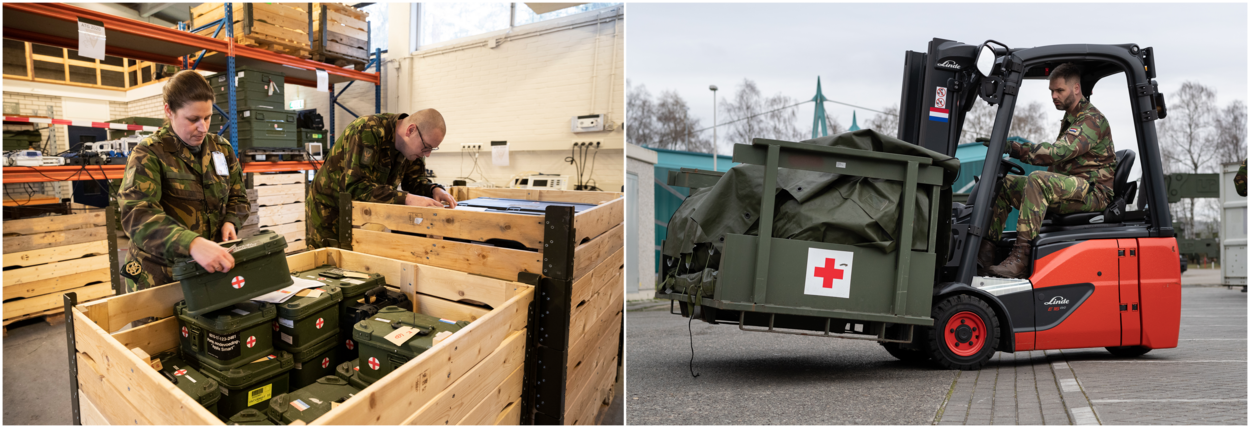 Denk daarbij aan medische capaciteit. “Onder meer met een noodhospitaal en het Centraal Militair Hospitaal in Utrecht. Denk ook aan tientallen extra intensive care bedden. Niet alleen op land, maar ook op schepen.” Het amfibische troepentransportschip Johan de Witt en het logistieke ondersteuningsschip Karel Doorman hebben bovendien grote, geavanceerde ziekenboegen.