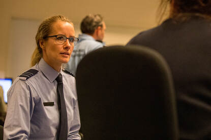Een dag op het CAT is hoe dan ook hectisch. Naast belangrijke afwegingen die ieder uur van de dag worden genomen, moet ook de defensietop worden bijgepraat. Desondanks is de sfeer gemoedelijk. “Ik ben blij dat ik mijn steentje kan bijdragen”, reageert majoor Kim, die bij het CAT meedraait als souschef voor de Directie Communicatie. “Ik ben erg blij dat ik hier iets waardevols kan doen, nu mijn werk omtrent 75 jaar bevrijding stil is gelegd. Laten we ons eerst maar eens bevrijden van dit virus.”