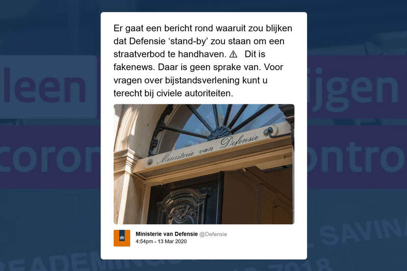 Sinds een paar jaar kent de Nederlandse taal een nieuw woord dat iedereen intussen kent: nepnieuws. Hierbij gaat het om onjuiste informatie die plotseling opduikt en razendsnel wordt verspreid, onder meer via sociale media. Dat is in deze coronacrisis niet anders. Ook Defensie krijgt te maken met grappenmakers, onwetenden en kwaadwillenden, die twijfel zaaien en soms regelrechte leugens verkopen.