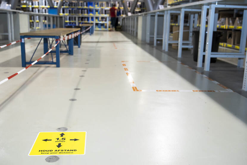 Duidelijk gemarkeerde looppaden en waarschuwingsborden houden iedereen bij de les.