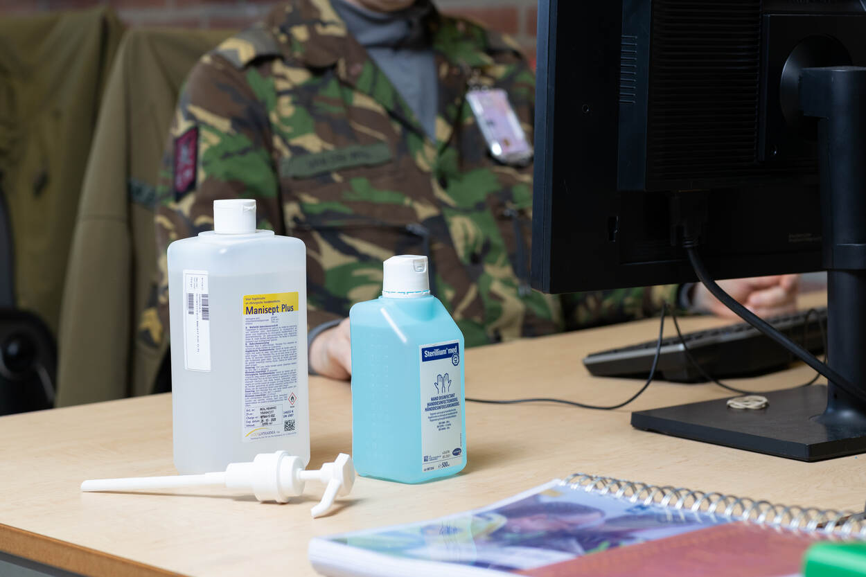 Er zijn wel minder militairen in de gebouwen, maar de werkzaamheden zijn niet minder geworden. “Er is niet minder schoon te maken”, zegt Patty. “Ik doe wat ik normaal ook doe en daarnaast nog eens elke dag trapleuningen, deur- en lichtknopjes. Normaal kom ik daar maar 1 keer per week aan toe.” Ze gebruikt geen andere schoonmaakmiddelen sinds de uitbraak van de crisis. “Maar wel extra schoonmaakdoekjes. Bovendien spoel je ze vaker uit.” Doordat het rustiger is op de kazerne, kan ze bijspringen bij andere collega's. "Dat is wel zo collegiaal.”