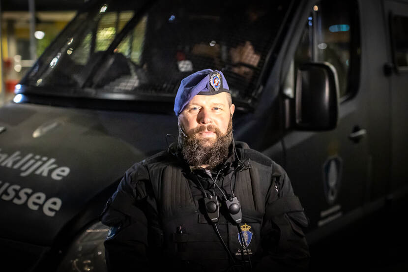 “We treden als BE niet vaak op in het nationale domein. Dat maakt deze inzet wel erg bijzonder. Van te voren hebben we geen idee waar we ingezet gaan worden. Tot op heden ben ik met mijn collega’s in Eindhoven, Stein en Den Bosch geweest om de lokale politie te ondersteunen met het handhaven van de openbare orde. Op de locaties waar we zijn ingezet, waren de problemen snel opgelost en gingen de relschoppers ervan door. Zodra wij voorwaarts gingen, schoot de menigte uiteen.