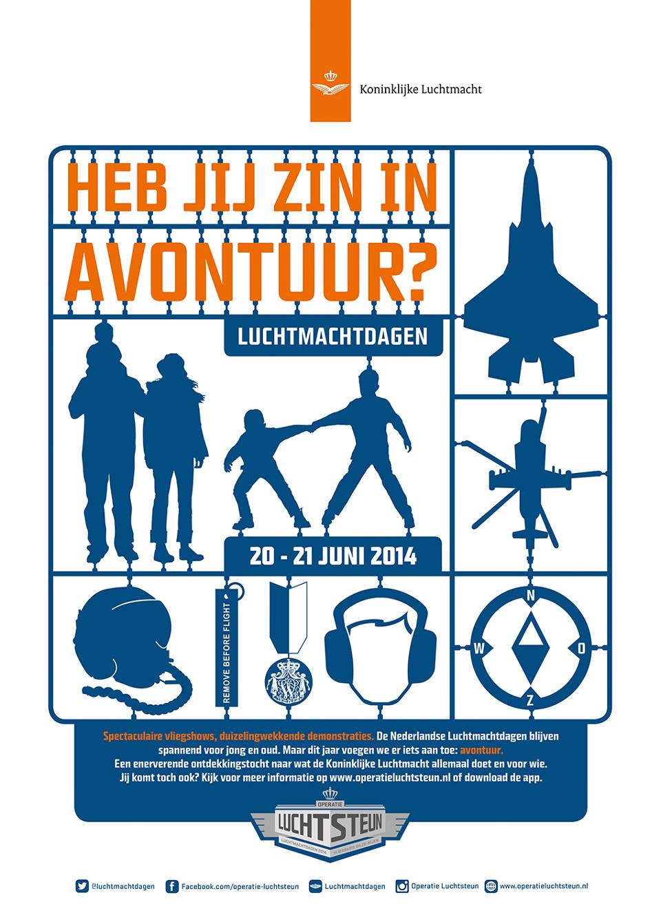 Vliegtuigen en helikopters in de lucht op de grond, ondersteunende diensten van de luchtmacht erom heen, en vele honderdduizenden bezoekers die er op af komen. De afgelopen dertig jaar opende de luchtmacht – vrijwel – jaarlijks haar deuren op 1 van haar vliegbases: kom binnen en kijk wat de luchtmacht doet en biedt. Maar het doen en beleven was minder aan de orde. Dát is juist de bedoeling tijdens Luchtmachtdagen van de komende jaren; de luchtmacht van binnenuit meemaken.