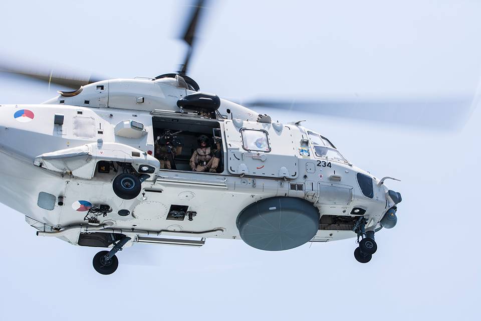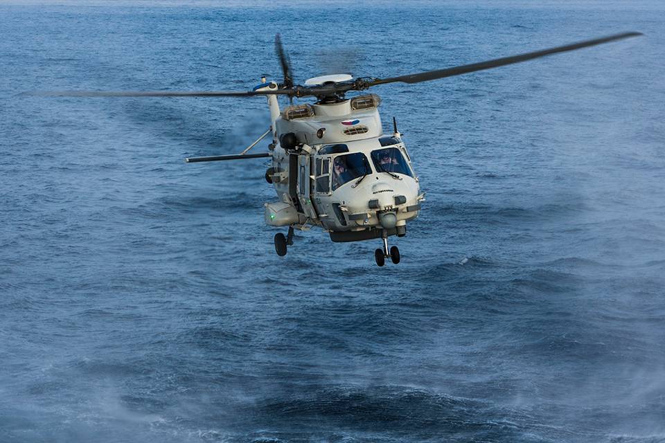‘De boordhelikopter geeft mij tijdens de patrouilles op zee een hele grote reikwijdte’, stelt commandant van de Evertsen kapitein-luitenant-ter-zee Jos Oppeneer. ‘Met de uitstekende sensoren kunnen we veel verder vooruit kijken. Daarnaast zetten we de NH90 veelvuldig in bij observaties van de kustlijn van Somalië, waarbij we heel veel info vergaren.’