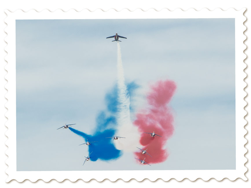 Na een plechtigheid met onder anderen koning Willem-Alexander, koningin Máxima, premier Rutte en minister Hennis-Plasschaert vliegen de Nederlandse toestellen tweemaal langs de kustlijn. Het typerende motorgeronk doet de duizenden toeschouwers op en rond het Plein van de 6e Juni zich onmiddellijk omdraaiden om het schouwspel te bekijken. De 320 Squadronveteranen raken zichtbaar ontroerd. Onder een warm applaus verdwijnen de toestellen weer via Le Havre richting Nederland.