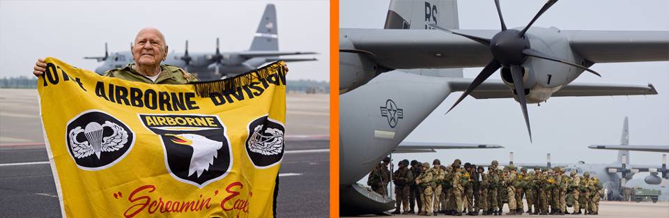 Op Eindhoven verzamelden zich parachutisten uit België, Duitsland, Frankrijk, Groot-Brittannië, Italië, Nederland, Polen en de Verenigde Staten. Boven de Ginkelse Heide konden er uiteindelijk zo’n 250 springen uit een C-47 en diverse C-130’s (foto r.). Eerder in de herdenkingsweek startte en landde herdenkingsvluchten ook vanaf vliegbasis Volkel.