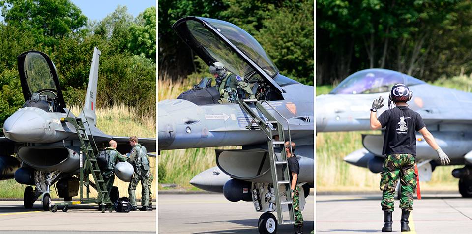 Vijf landen die met de F-16 Midlife Update vliegen. Allemaal dezelfde types? Nee: 4 soorten motoren, 4 targetingpods, 4 radar warning recievers, 3 jammers, 4 raketten, 10 bommen. Supervisor Gert Barend: “Ik vlieg als instructeur dus in een heel andere F-16 dan normaal. Erg Leuk!”