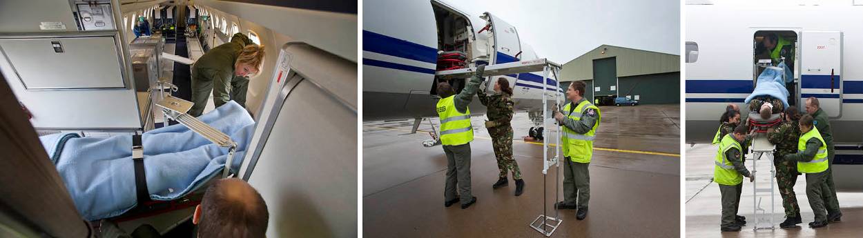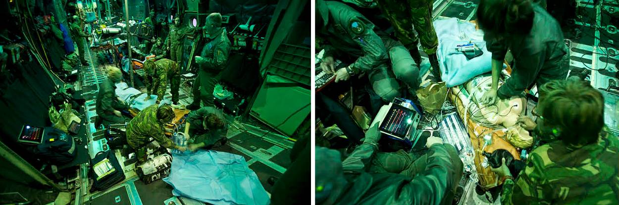 Hier is ook voor de flight crew een belangrijke rol weggelegd. Gezagvoerder majoor Marcel: “De aard van de verwondingen van de patiënten heeft invloed op de uitvoering van de vlucht. Zo kan ik bij zwaargewonden bijvoorbeeld niet te hard accelereren op decellereren. En kan ik bij een patiënt met een longaandoening niet te hoog vliegen omdat de luchtdruk dan voor problemen kan zorgen. Laag vliegen kost dan weer meer brandstof…”