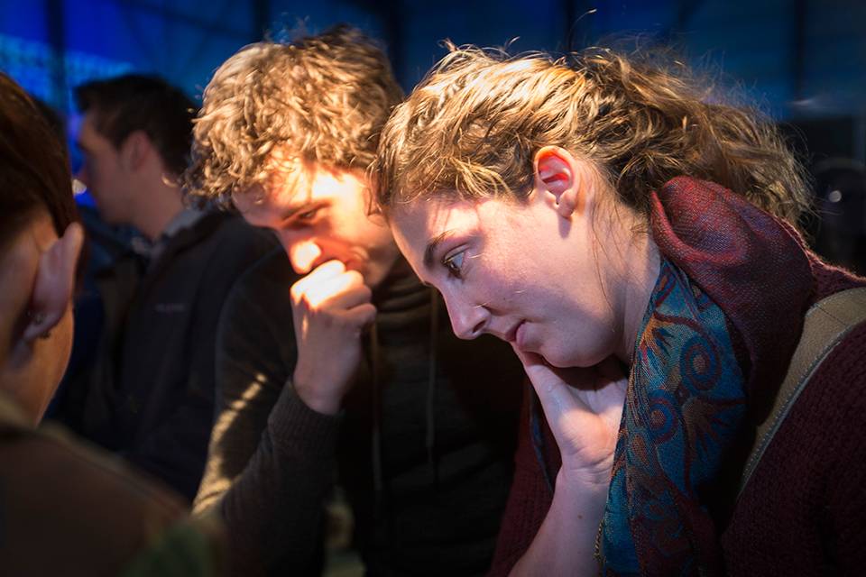 Bij de wervingsstand wisselen Myrna Linders (27) en haar vriend Johan Swarts (28) contactgegevens uit met een wervingsvoorlichter. “De projecten van CLSK 3.0 vind ik erg interessant,” zegt Swarts. Hij studeert momenteel af als werktuigbouwkundig ingenieur. “Ik ben nooit vies geweest om mijn handen te laten wapperen en ook niet van fysiek vies worden,” lacht hij. “Ik combineer dat graag met technische diepgang. Een aantal kenmerken die wel passen bij Defensie, lijkt me.” De twee worden binnenkort benaderd voor specifieke informatiebijeenkomsten afgestemd op hun vakgebied. Zijn vriendin werkt namelijk in een TBS-kliniek, maar zou graag als hulpverlener bij Defensie aan de slag gaan. “Net als Johan lijkt mij het kameraadschap bij Defensie ook fantastisch. En ik wil wat meer afwisseling qua werkomgeving. Bij Defensie kan ik over de hele wereld werken én maatschappelijk bezig zijn. Heel gaaf.”