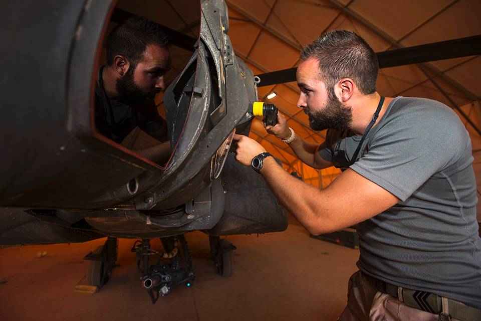 “Mijn team moest onlangs tot in het holst van de nacht doorpezen om een Apache weer in orde te krijgen. Als je die dan uiteindelijk vliegklaar krijgt, is dat een high-five met je collega’s waard. Iedereen is ontzettend blij dat je het lek boven hebt. Toch was dat slechts een incident. De Apaches houden zich heel goed onder deze omstandigheden. Ze weren zich kranig tegen de warmte en de droogte. Water, daar houden ze niet van.”