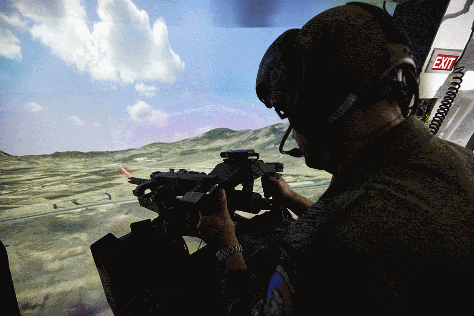 Plaats van handeling is gebouw 337 op Vliegbasis Gilze-Rijen. Met de Doorgunner Simulator (DGS) voor loadmasters en boordschutters heeft het Defensie Helikopter Commando sinds 26 februari een opleidingsmogelijkheid die zijn gelijke in Europa niet kent. Daarvan is adjudant Paul Arends overtuigd: "Het spaart schaarse vlieguren; je hoeft niet meer heen en weer naar de schietrange op De Vliehors, wat al 2 uur scheelt. Daarbij vermindert het geluidsoverlast en het gebruik van munitie. Vandaar dat buitenlandse belangstellenden al in de rij staan om een kijkje te nemen.”