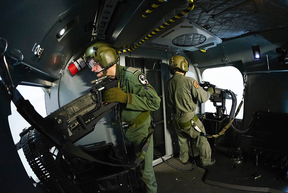 De ruimte in de simulator is voor de loadmasters/boordschutters net zo groot als die aan boord van de echte helikopters.