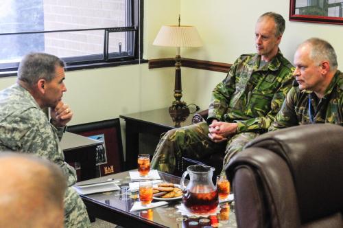 Commandant Defensie Helikopter Commando (DHC) commodore Jan Willem Westerbeek en commandant 11 Luchtmobiele Brigade brigadegeneraal Kees Mattijssen brachten eind januari een bezoek aan Fort Hood. Ze werden ontvangen door major-general Jeffrey Colt, commandant van de 1st Army-Division West. Ze bespraken onder andere de trainingsmogelijkheden voor het DHC en 11 Luchtmobiel en bezochten tevens de Nederlandse opleidings- en trainingseenheid op Ft. Hood, het 302 Squadron. Foto: Staff Sgt. Tony Foster.