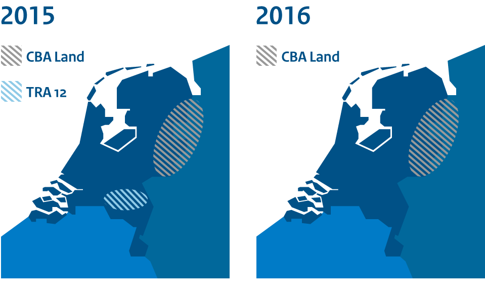 - Eind 2017: de TRA boven Brabant verdwijnt. Oefenvluchten vinden nu plaats in de CBA boven Noordoost Nederland en Duitsland.