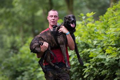 De hond 20 meter dragen is niet niks bij een ras dat gemiddeld 38 kilo weegt.