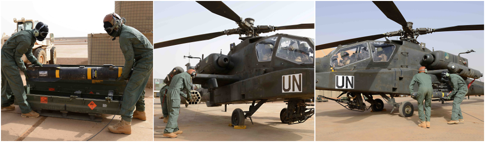 Het Minusma-hoofdkwartier in Bamako geeft opdrachten voor alle helikoptervluchten in Mali. Daarvoor koopt de VN maandelijks vlieguren die worden uitgevoerd door Nederlandse helikopters, maar bijvoorbeeld ook die van Frankrijk die eveneens op Gao staan. Alferink: “Onze Rules of Engagement (gevechtsinstructies, red.) zijn vastgesteld door de VN. Commandanten van gevechtseenheden bepalen of het gebruik van wapensystemen noodzakelijk is.” Zoals gebeurt tijdens Helidet 4, wanneer VN-soldaten onder vuur liggen bij Tabankort. Waarschuwingsschoten van de Apache baten niet, waarop een Apache een Hellfire lanceert. Met succes. “Het was de eerste keer dat VN-troepen op deze manier een doel uitschakelden”, gaat Alferink verder. “Om verdere escalatie in de regio te voorkomen, stonden onze Apaches daarna tijdelijk op Kidal, 1 van onze 4 Forward Operating Bases.”