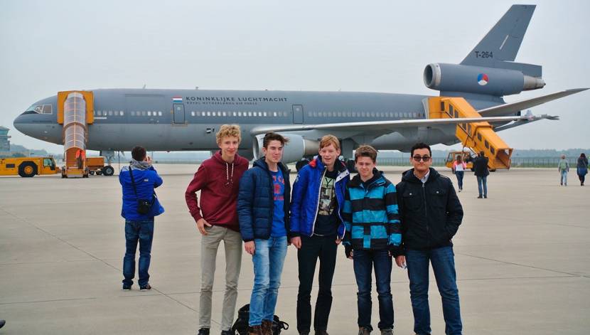 Winnaars van diverse techniek promotie evenementen mochten op 21 oktober met de KDC-10 de lucht in vanaf vliegbasis Eindhoven. De Stichting Techniekpromotie organiseerde dit jaar voor de 10e keer de Eureka!Cup met als doel iedere jongere in aanraking te laten komen met wetenschap & technologie. Rijkswaterstaat, Ministerie van Defensie, ASML, G4 en ProRail daagden de leerlingen uit om mee te denken over actuele technische vraagstukken. Binnen het thema Civiele Techniek gingen bij de landelijke voorrondes meer dan 5000 Havo- en Vwo-leerlingen en 1500 VMBO leerlingen in 2015 aan de slag met actuele technisch-wetenschappelijke onderwerpen. Leerlingen van Gymnasium Novum (foto) uit Voorburg en het Jeroen Bosch College uit ’s-Hertogenbosch waren de winnaars. In 2016 is de landelijke Eureka!cup finale dag op 19 mei in het Nationaal Militair Museum.