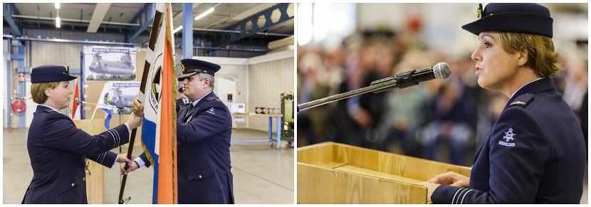 In bijzijn van familie, vrienden, genodigden en collega’s heeft majoor Edwin Capelle het commando over 930 squadron overgedragen aan ranggenoot Ellen van den Hout-Tegelaers.