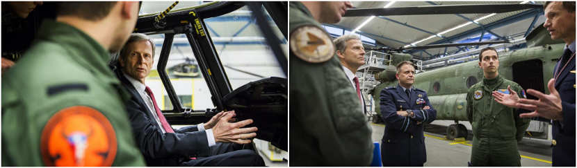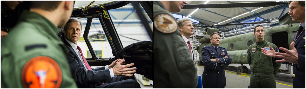 Commandant 298 Squadron luitenant-kolonel Hans Alferink gaf een presentatie over de inzet van helikopters in Mali. Aansluitend gaf luitenant-kolonel Geert Ariëns, Hoofd Operatiën vliegbasis Volkel, inzicht in de rol van Nederlandse F-16’s in de ATF ME. Gazenbeek bezocht verder het 298 Squadron. Gazenbeek kreeg uitleg over de mogelijkheden van de Chinook en nam de tijd om in gesprek te gaan met vliegbasispersoneel. Foto’s: KLu