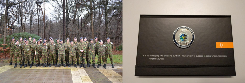 Een delegatie van de Groep Luchtmacht Reserve (GLR) ontving op 30 januari een dankbetuiging voor hun ondersteuning tijdens in de aanloop naar de presentatie van het onderzoeksrapport naar de crash van vlucht MH-17. De luchtmachtreservisten realiseerden wekenlang klokje rond de bewaking van het terrein op vliegbasis Gilze-Rijen. In een van de hangaars is voor het onderzoek en een reconstructie van het vliegtuig gemaakt. Foto’s: GLR