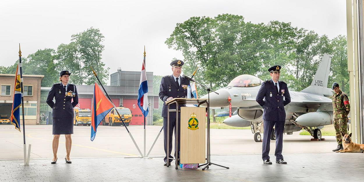 Kolonel Elanor Boekholt-O’Sullivan nam op 9 juni het commando over de vliegbasis Eindhoven over van ranggenoot Johan van Soest.