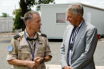 Hoitink bezocht met zijn Duitse evenknie Hans-Peter Bartels ook de Duitse eenheid in Mali. Foto: Defensie