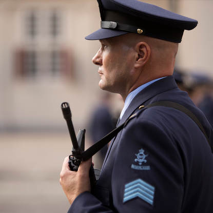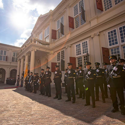 De luchtmacht vormde de erewacht onder andere bij Paleis Noordeinde.