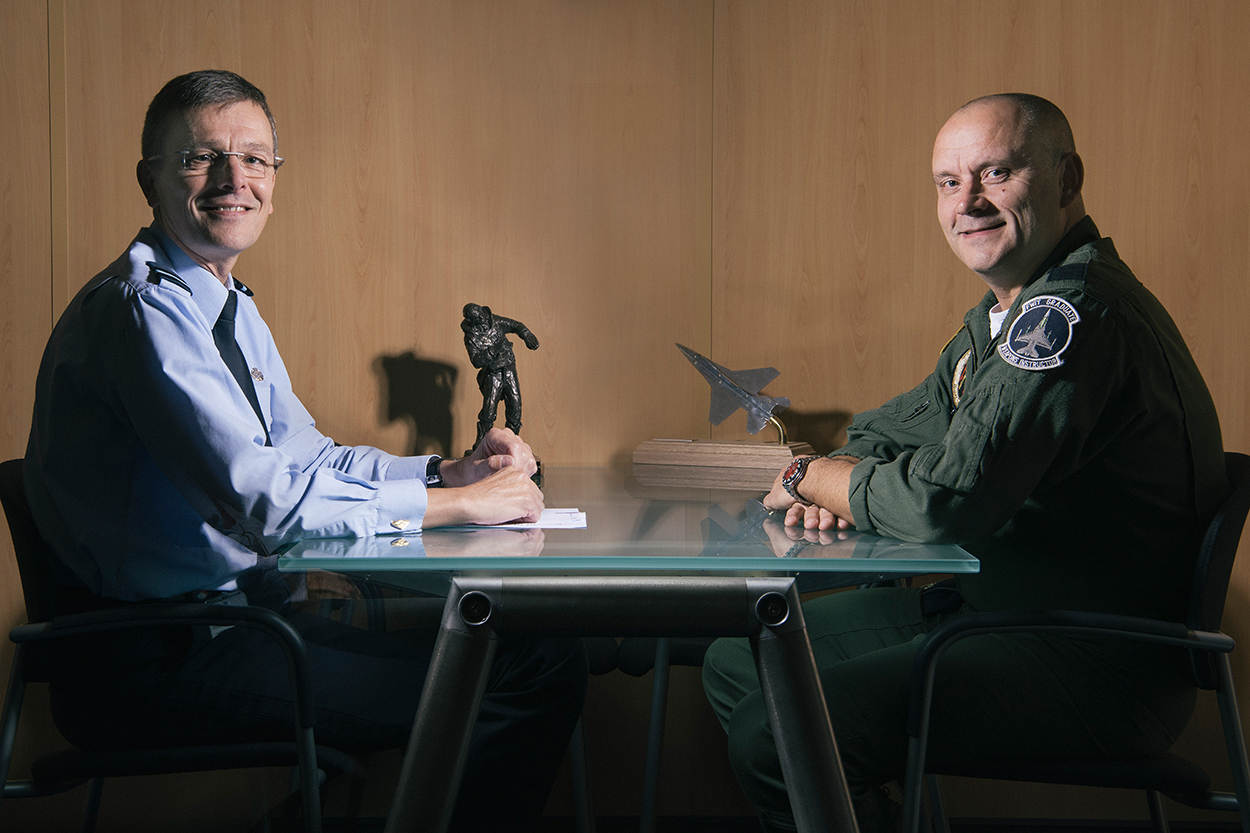 Ontspannen maar tegelijkertijd gedreven zitten de Directeur Operaties (DO) en Materiële Instandhouding (DMI) tegenover elkaar. Maar eigenlijk staan commodores André Steur en Mario Verbeek zij aan zij: want wat eerstgenoemde nodig heeft – airframes – levert de 2e. Juist daar lagen de afgelopen jaren of zelfs decennia de grootste problemen. Te weinig reservedelen zorgde voor dito inzetbare helikopters en vliegtuigen. Dat wordt nu anders bezweren beiden.