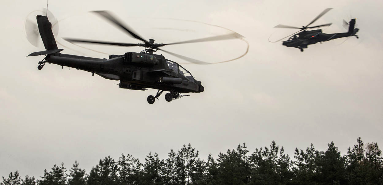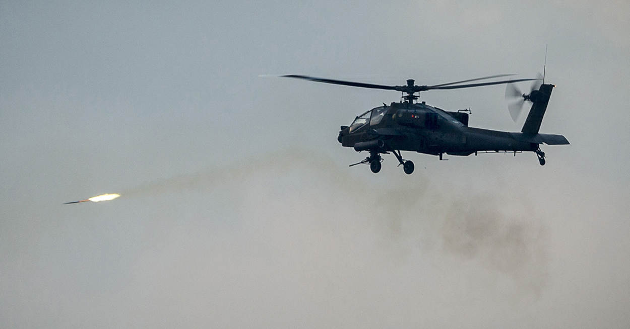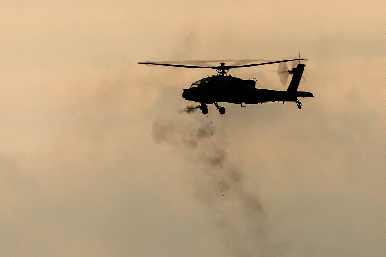 Foto boven: Een Apache met een HWIC-cursist aan het ‘roer’ boven de schietrange Bergen Hohne.