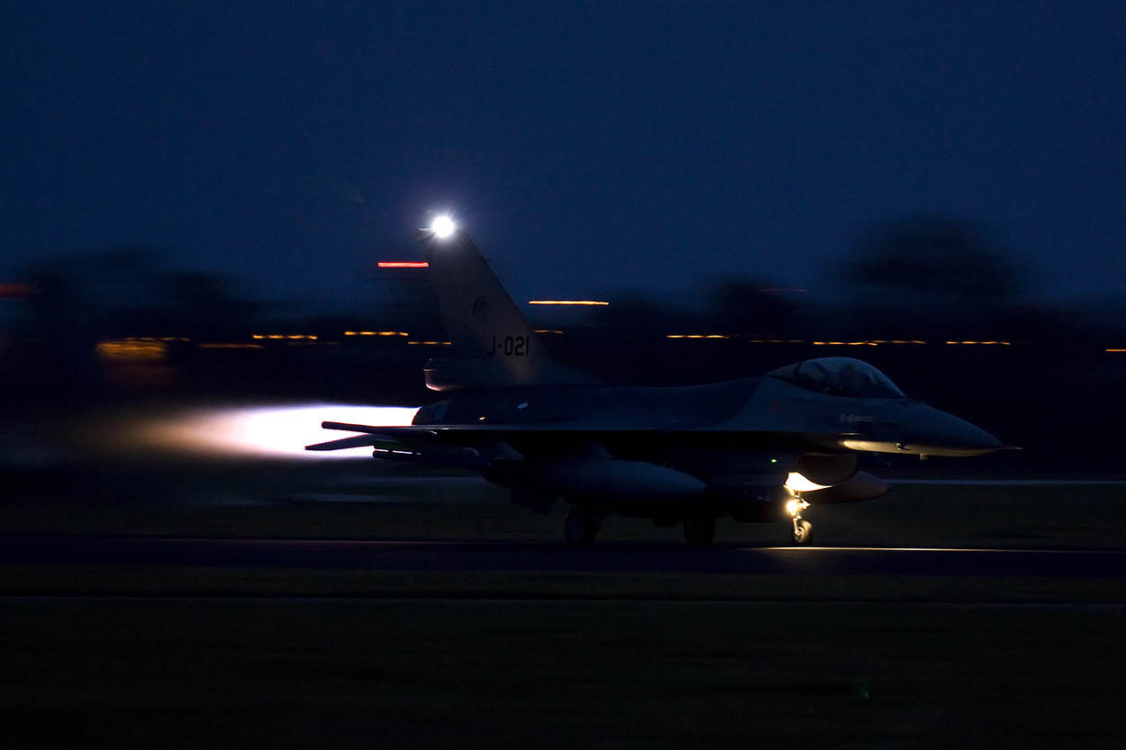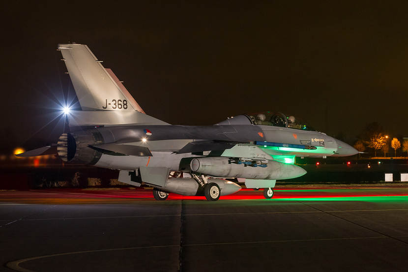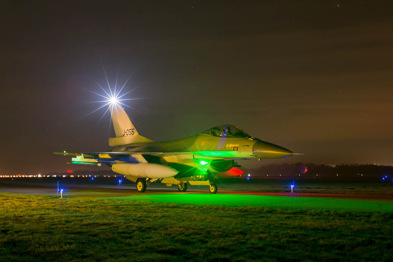Om vliegers optimaal voor te bereiden op hun taak, wordt op vliegbases Leeuwarden en Volkel van eind oktober tot en met midden december getraind. Vluchten gaan door tot uiterlijk 23.00 uur. Op vrijdag zijn alleen overdag vliegoperaties. Foto boven: Bart van der Does