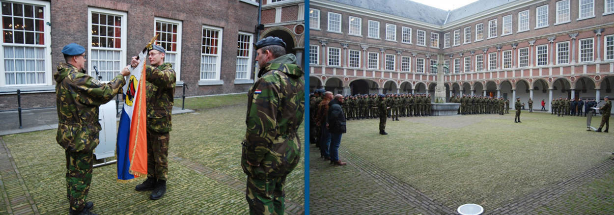 Het commando van het 122 Squadron kwam op 23 januari in handen van majoor Jerom Sanders. Hij nam het over van de waarnemend commandant kapitein Hans Schouten. Die had weer tijdelijk de vlag over genomen van majoor Remco Baerveldt. Foto’s: Defensie