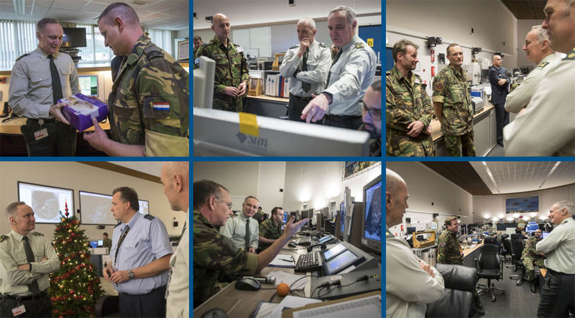 Diverse defensiemedewerkers die met Kerst in eigen land werkten, kregen de dag ervoor bezoek van Commandant der Strijdkrachten (CDS) generaal Tom Middendorp. Samen met Krijgsmachtadjudant Nico Spierenburg stak hij het personeel een hart onder de riem en deelde kerstlekkernijen uit.
