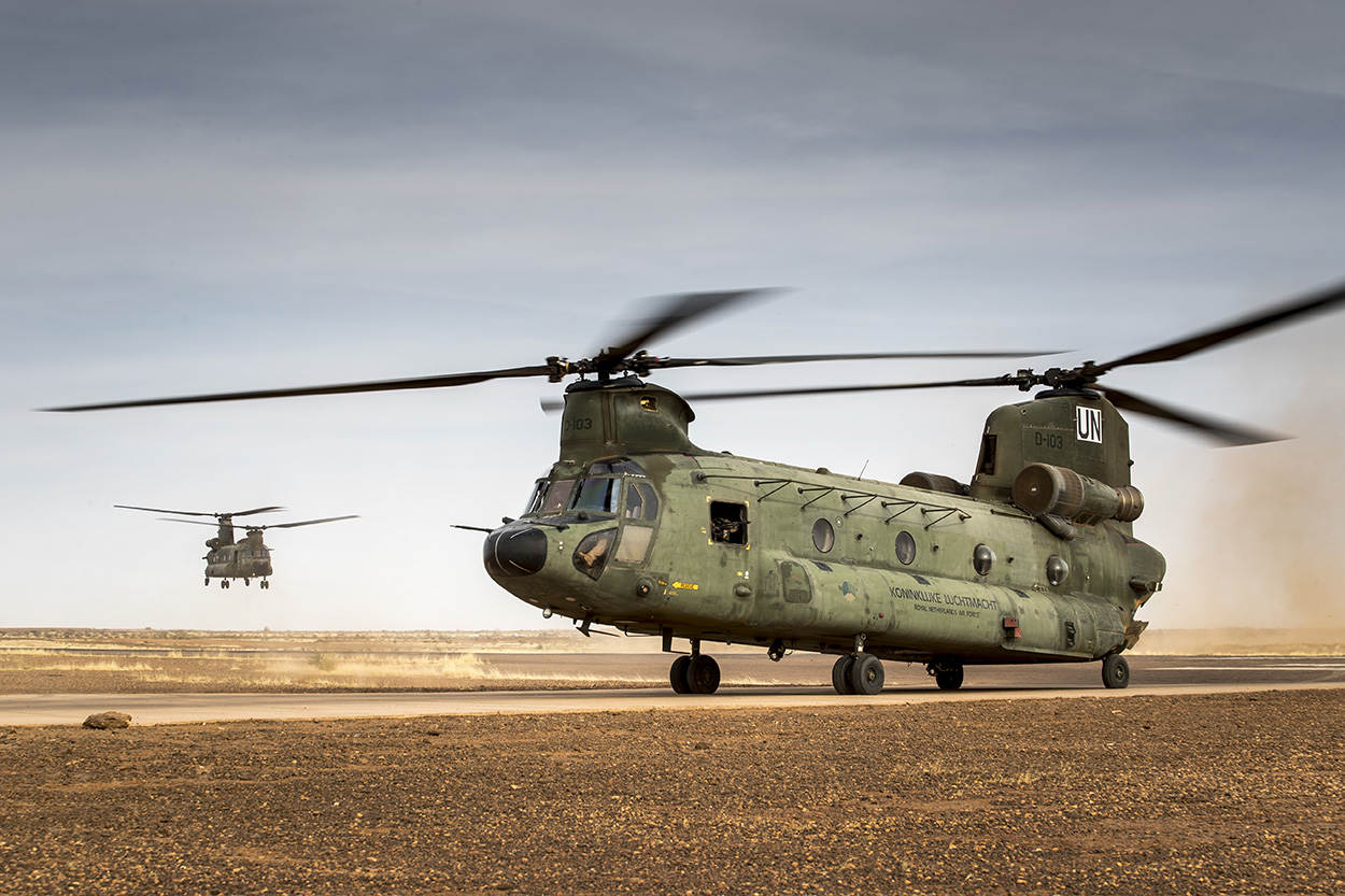 Kerkhove is voor een flitsbezoek op Camp Castor in Mali. Hij praat er onder anderen met zijn Duitse collega’s van de Intelligence, Surveillance & Reconaissance-company. Die opereren met de Heron-drone, hun eyes in the sky. “Maar ik beschik over nog véél meer sensoren. Heb je even?” De commandant van ASIFU gaat verzitten, denkt even na. “Vanuit de Chinook kun je mooi met een grote lens fotograferen. Zelfs tijdens trooping. Zo’n kist vliegt 200 kilometer een bepaalde richting in en komt van alles tegen waarvan het belangrijk is foto’s te hebben. Voor de Apaches – met uitstekende middelen aan boord – gold dat natuurlijk eveneens. Maar ook het Salvadoraanse helikopterdetachement in Timboektoe doet lekker mee met hun Hughes MD500. Of de Portugezen met de C-130 Hercules. Een van mijn luchtfotografen heeft letterlijk 9 uur lang uit die kist gehangen. Briljant!”