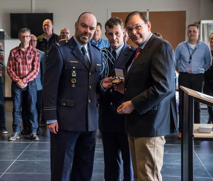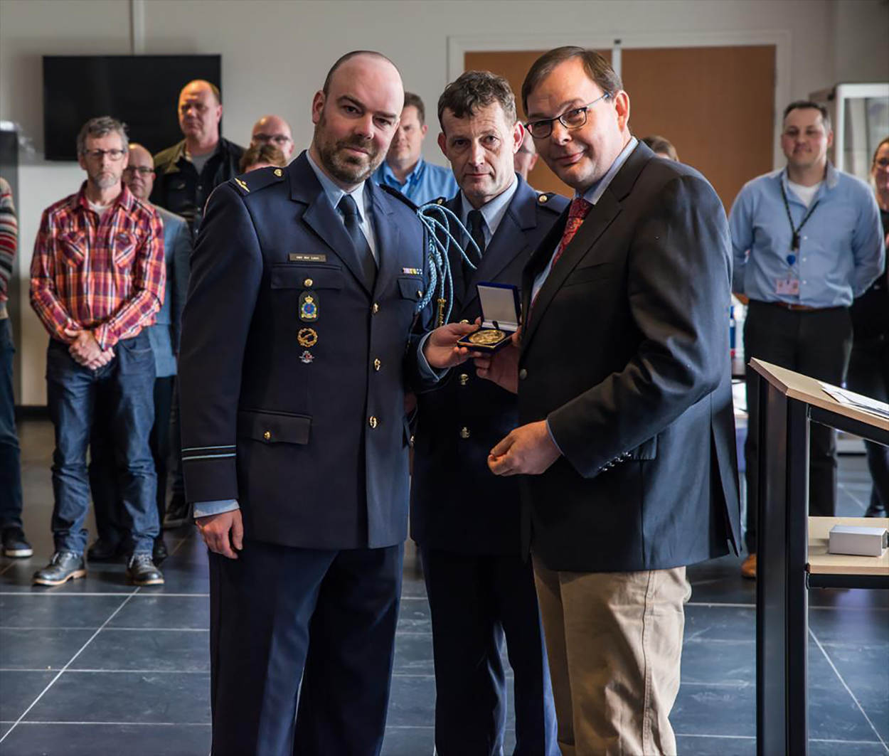 Het 323 Squadron kreeg eind maart uit handen van C-LSK luitenant-generaal Dennis Luyt maart een Pionierscoin uitgereikt. 323 verdiende deze waardering voor hun omgang met technologische, sociale en culturele innovatie. Toepasselijk kregen ze coin-nummer 069 uitgereikt omdat 323 squadron in 2017 al 69 jaar bestaat.
