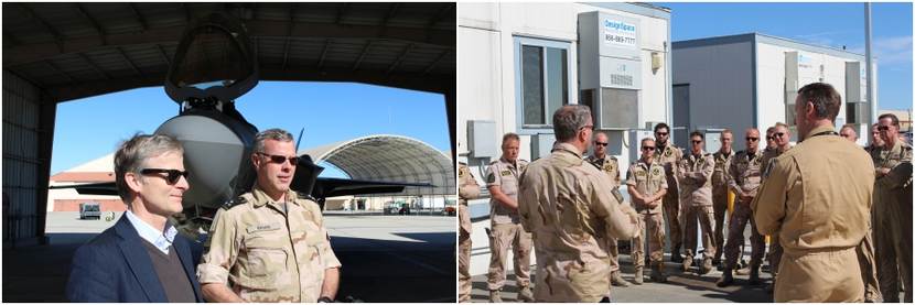 De SG sprak uitgebreid met het luchtmachtpersoneel dat geen blad voor de mond nam. Onder meer de inzetbaarheid van het materieel, doorstroommogelijkheden en de werkdruk werden besproken. Geerts: “Ik besef mij heel goed dat er veel van jullie wordt gevraagd. De werk- en uitzenddruk is hoog. Ik ben onder de indruk van de professionaliteit waarmee jullie elke missie weten te klaren. Het motto 1 team, 1 taak maken jullie meer dan waar.” Foto’s: KLu en Herman Zonderland