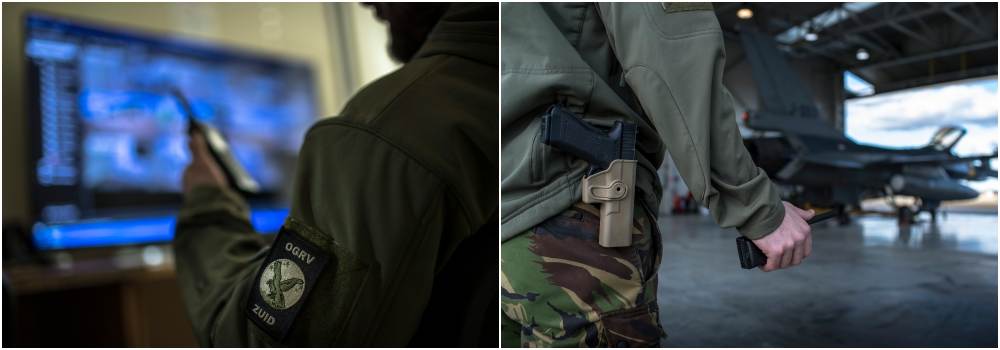 “De grootste uitdaging in het begin was de temperatuur: die is min 27 graden geweest. Dan is het behoorlijk fris tijdens de patrouilles. Ik zit hier sinds 2 januari. De Litouwers bewaken de buitenste ring van de vliegbasis. Wij beveiligen het Nederlandse defensiepersoneel en -materiaal, zoals de munitie, de shelters met F-16’s en de CIS-systemen. Met elektronische hulpmiddelen en patrouilles houden we in 3 shifts ons terrein 24/7 in de gaten. In geval van calamiteiten zijn wij er. We hebben overal een plan voor: hydrazine, indringers, drones, zware ongelukken, crashes en branden.”