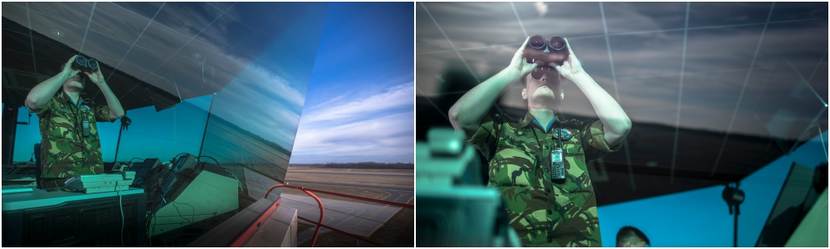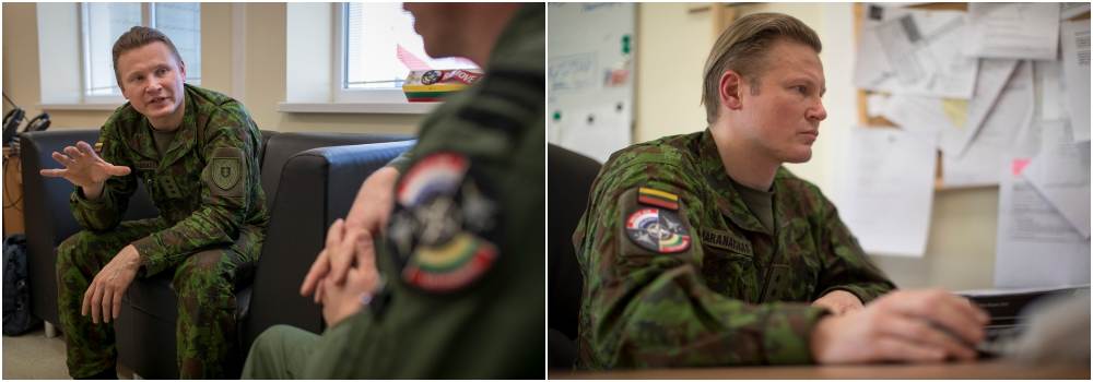 “In Siauliai heb ik vooral een controlerende functie. Op de toren werk ik samen met twee civiele luchtverkeersleiders uit Litouwen. De air traffic controllers werken op burgerluchthavens in Litouwen. Het zijn vakmensen, maar ze zijn niet zo bekend met de militaire luchtvaart en onze procedures; daarbij hebben ze sturing nodig. Ik zorg er bijvoorbeeld voor dat F-16's prioriteit krijgen bij de landing, net als in Nederland. Je wilt niet dat gevechtstoestellen met bewapening minutenlang onnodig in de lucht hangen. Het Engels van de Litouwers is beperkt. Als de communicatie met de Nederlandse vlieger lastig verloopt, pak ik zelf de microfoon om uit te leggen wat ze willen. Maar, de Litouwers zijn welwillend om zaken te leren; de samenwerking gaat goed.”