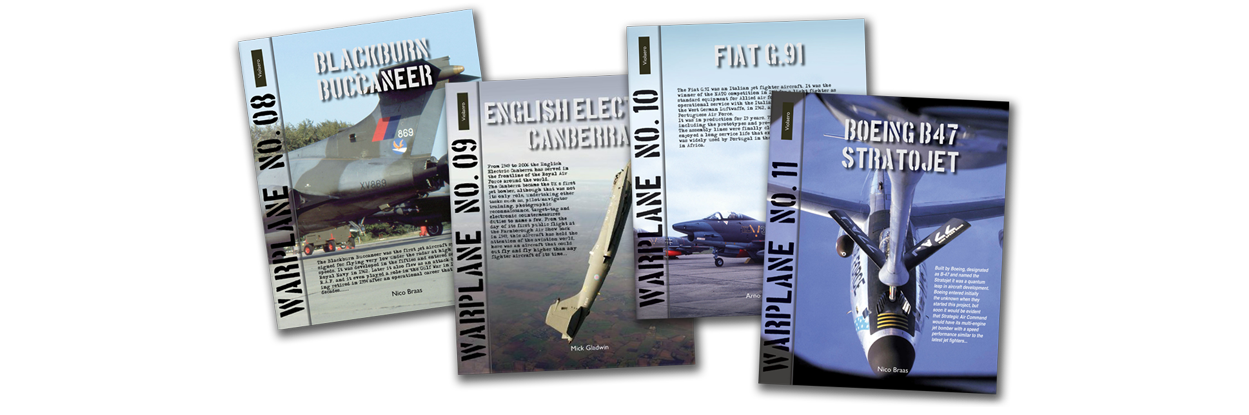 Na de vorige Leeswijzer verschenen liefst 4 titels van Warplane. Deze aardige Nederlandse serie behandelt minder bekende militaire vliegtuigtypes. In dit geval waagden 3 auteurs zich aan de Buccaneer, Canberra, G.91 en B-47. 2 toestellen van Britse bodem, ontwikkeld in respectievelijk midden jaren ’40 (Canberra) en eind jaren ’50 (Buccaneer) deden de oerdegelijke ontwerpen dienst tot achtereenvolgens midden jaren '00 en jaren '90. Van ongeveer de dezelfde tijd stammen de Italiaanse G-91 (midden ‘50) en Amerikaanse B-47 (midden ’40). Vooral de laatste deed kort dienst door de introductie van de B-52, halverwege de jaren ‘50. De G.91 hield het in Portugese dienst ook uit tot midden jaren ’90.
