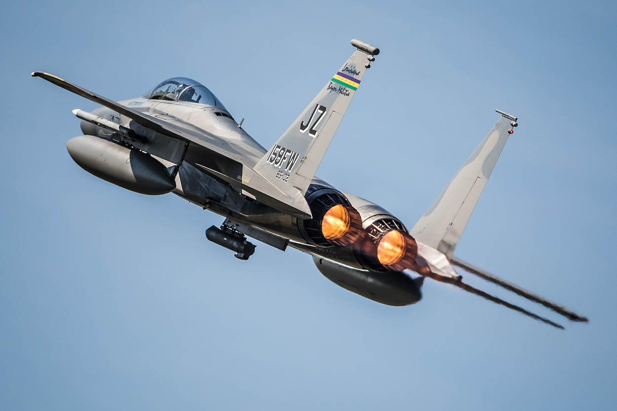 Ook zijn er geen oneindige aantallen mensen en machines meer, dus inzet moet precies zijn: nevenschade wordt niet meer geaccepteerd. Kortom, we moeten goed en snel zijn.” Op de foto: Amerikaanse F-15 van de Florida Air National Guard