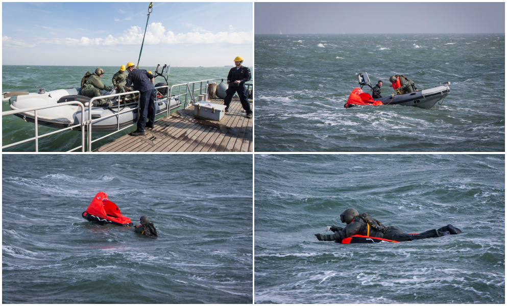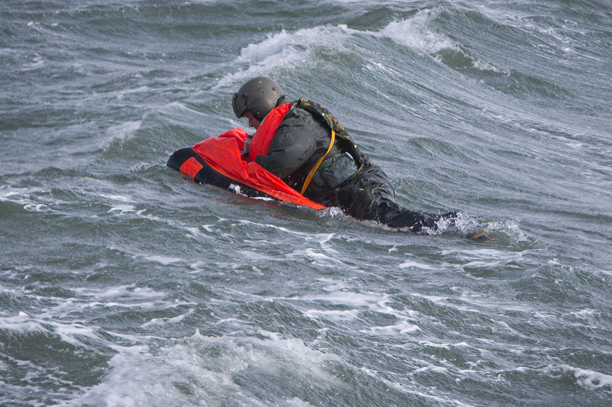 Met zijn FLIR (Forward Looking InfraRed) is een Dornier goed uitgerust voor een zoekactie op lage hoogte. Fröhlich: “Je moet middelen altijd inzetten waarvoor ze geschikt zijn. Nu moesten wij op 3.000 voet een search-patroon gaan opzetten. Dat doen we niet vaak, maar is met zo’n grote tanker wel hartstikke leuk om te doen.” Tijdens het zoeken liet de gezagvoerder 2 paar ogen extra door de ramen aan de linkerzijde van de cockpit meespeuren. “En na een paar keer rond de Marinehaven Den Helder hadden we de drenkeling te pakken. Voorbij het havenhoofd stak z’n rode dinghy mooi af tegen de grijze zee.”