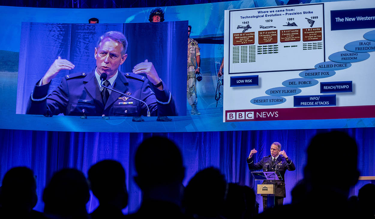 ‘Waarom is een 5e generatie zo belangrijk, voor zowel de huidige luchtmacht maar juist ook voor de andere krijgsmachtdelen’, stelde gastheer Commandant Luchtstrijdkrachten luitenant-generaal Dennis Luyt de aanwezigen de vraag. “En is de invoering van 5de generatie platformen zoals de F-35 dan voldoende om de uitdagingen in de nieuwe wereld het hoofd te bieden of is er meer voor nodig?” Van wat de gastsprekers daarover zeiden, volgt hieronder korte samenvatting.