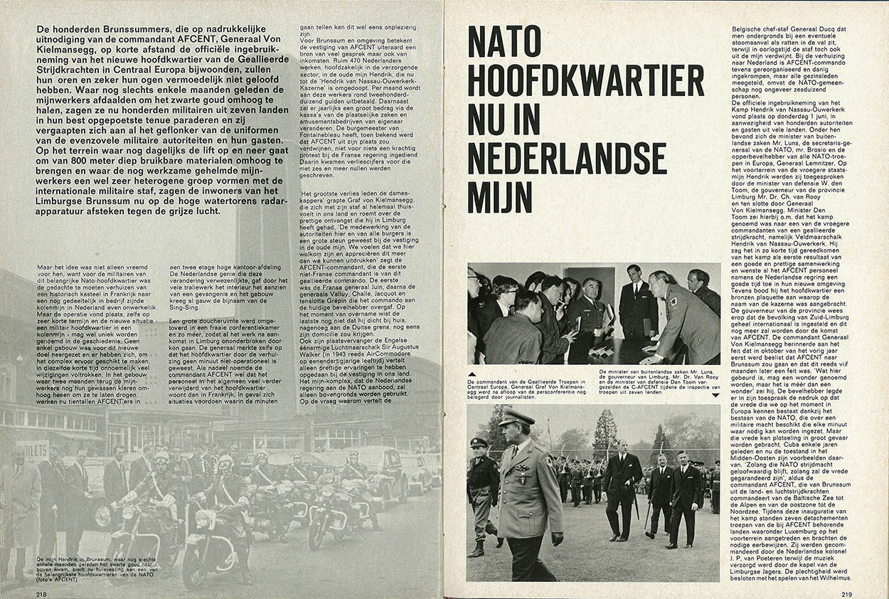In Limburg ontstaat aan het begin van de 20e eeuw een grote mijnindustrie. De ontdekking van enorme gasreserves in het noorden van Nederland luidt zo’n halve eeuw later echter het einde van het tijdperk van het ‘zwarte goud’ in. In 1965 besluit de Nederlandse regering tot het afbouwen van de Limburgse mijnindustrie en het sluiten van de mijnen. Om de gevolgen daarvan voor de lokale economie te compenseren, start een herontwikkelingsprogramma. Als onderdeel daarvan biedt Nederland de locatie van de Staatsmijn Hendrik in Brunssum aan als nieuwe vestigingsplaats voor de NAVO.