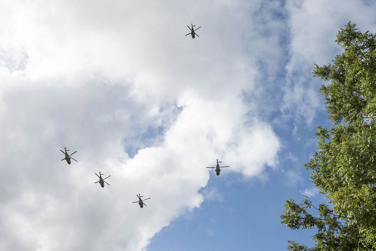 Een sonoor ronkend geluid zwelt aan over de herdenkingsplaats op Maritiem Vliegkamp De Kooy. Een geluid dat ruim 35 jaar lang bekend stond als synoniem voor MLD-helikopters, dat van de Westland Lynx. Bij Defensie inmiddels uitgefaseerd, maar de Duitse Marineflieger vliegt er nog mee. Een welkome gast op de reünie én vliegshow Heldair Show Maritiem (die de dag erna voor het algemene publiek plaatsvindt), zet net voor aanvang van de ceremonie zijn wielen aan de grond en motoren uit. Timing.