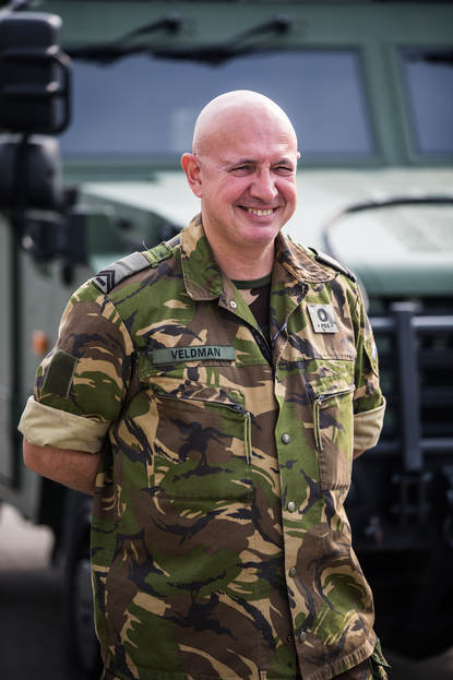 “Ik geef leiding aan de afdeling die de aan te vallen doelen omschrijft en alles wat daarbij komt kijken. Targeting is een deel van de intell-opleiding en ik kom uit die hoek. Als zodanig ben ik 2 keer uitgezonden geweest naar Italië. Deze functie was vacant en het leek me wel wat. Leuk en uitdagend. Hier werkt het door de mengelmoes aan landen en dus culturen net even anders. In Nederland gaat iedereen los met elkaar om – hier kijken ze vaak eerst naar wat je op je schouder hebt. Ik ben nog maar net begonnen, maar heb nu al het voornemen om bij te tekenen.”