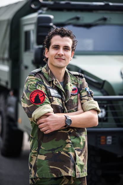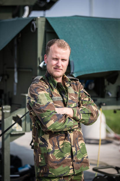 “Voor mij is dit de eerste ervaring met een Command and Control-eenheid, want zelf kom ik van de CIS op Leeuwarden. Ik vind het hartstikke leuk. CIS hier is wel heel anders dan op een vliegbasis, maar overeenkomsten zijn de platform- en groene taak. Hier ook, op Poggio Renatico en op oefening of uitzending. Italië levert als host nation de infra en ben ik verantwoordelijk voor de tactical datalink, radio en satcom. Ik wist van tevoren wat ik zou gaan doen, want ben hier een week hier op oriëntatie geweest. En geen moment spijt van m’n keuze: ik heb 2 keer 1 jaar bijgetekend.”