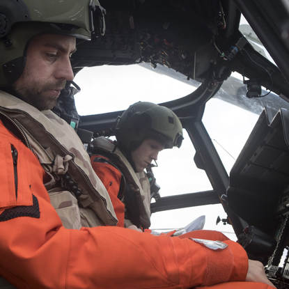De Atlantische Oceaan ligt uitgestrekt onder de helikopter. Voorin zitten vlieger luitenant ter zee (ltz) 2OC Christian en tacco ranggenoot Bernd, achterin sensor operator sergeant Dave. Aan deze 3-eenheid in opleiding de taak om – onder toeziend oog van instructeurs – de Nederlandse onderzeeboot Zr. Ms. Walrus op te sporen.