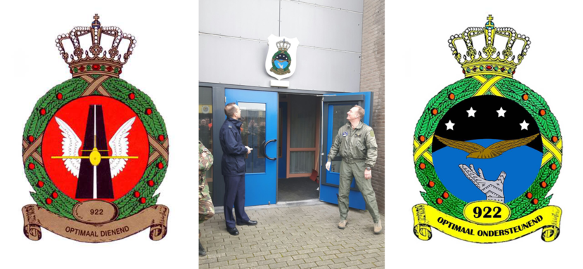 Commandant Vliegbasis Leeuwarden kolonel Arnoud Stallmann onthulde op 5 februari het nieuwe embleem van het 922 Squadron. Aanleiding voor de wijziging van het embleem is de gewijzigde taakstelling van het squadron: van primair gericht op de openstelling van het platform en de Cornfield Range op Vlieland, nu ook op het militair gereedstellen van personeel. Daarbij horen zowel militaire basisvaardigheden, functiegerichte sporttraining, EHBO- en BHV-training en -bijscholing. Daarnaast is het squadron verantwoordelijk voor het gereedstellen van twee OGRV-vluchten en speurhondenteams. Ook is wapenspreuk veranderd, van ‘Optimaal Dienend’ naar ‘Optimaal Ondersteunend’.