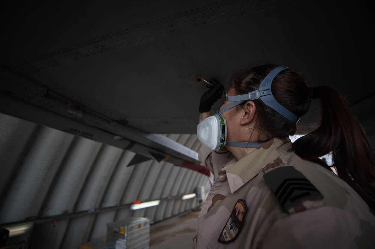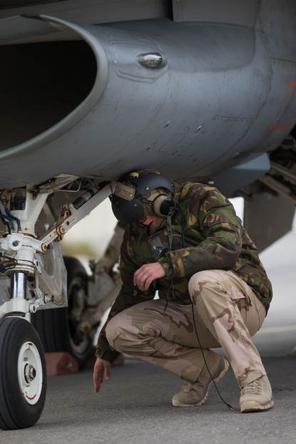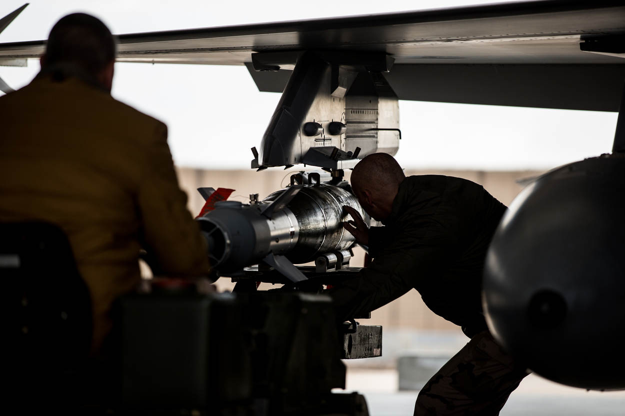 Naast Nederland vliegen Frankrijk, Duitsland, Engeland en Amerika in het gebied. “Eerst wordt het doel geselecteerd, dan kijken ze in Qatar wie de meest geschikte wapens bij zich heeft”, zegt Michel. “Er is nu veel vraag naar Small Diameter Bombs.” Deze SDB’s hangen onder meer onder de Nederlandse F-16’s. Ze zijn een stuk kleiner dan een 500- of 2000-pounder. “SDB’s zijn heel precies en hebben een andere scherfwerking”, legt Michel uit. “Er is een kleinere ontploffing met minder nevenschade. En dat past precies bij deze missie.”